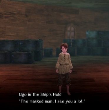 - Ugo appears as a wandering NPC after you've fully completed the Oar Collector Extermination request in Ship 1.