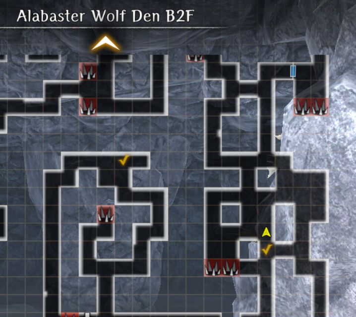 - At the end of the path you will encounter a wolf. It has infinite HP and will flee after you do enough damage. Continue north to the B3F stairs.